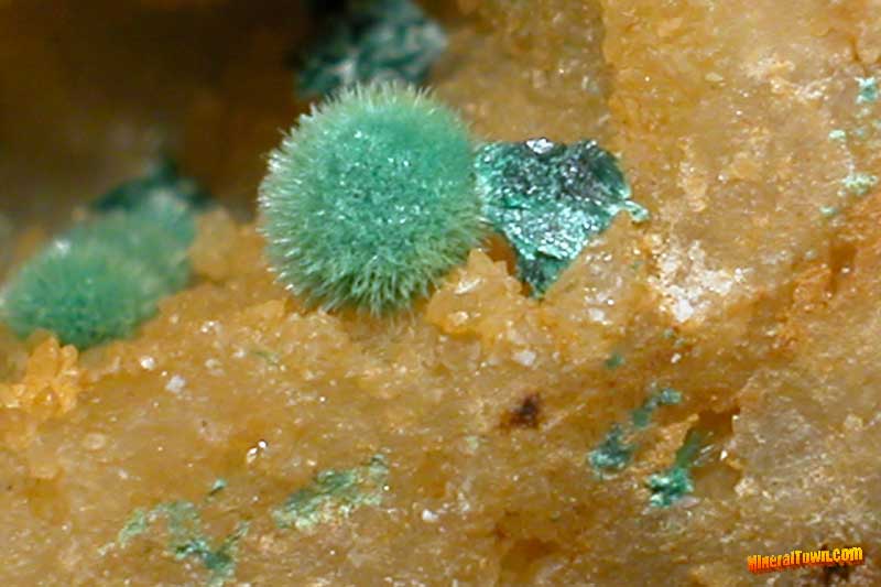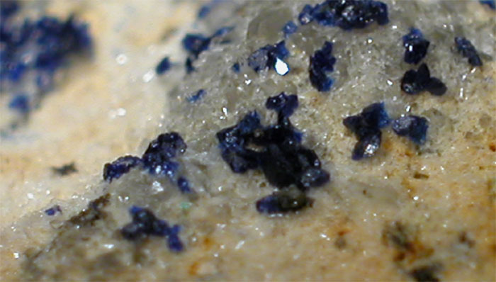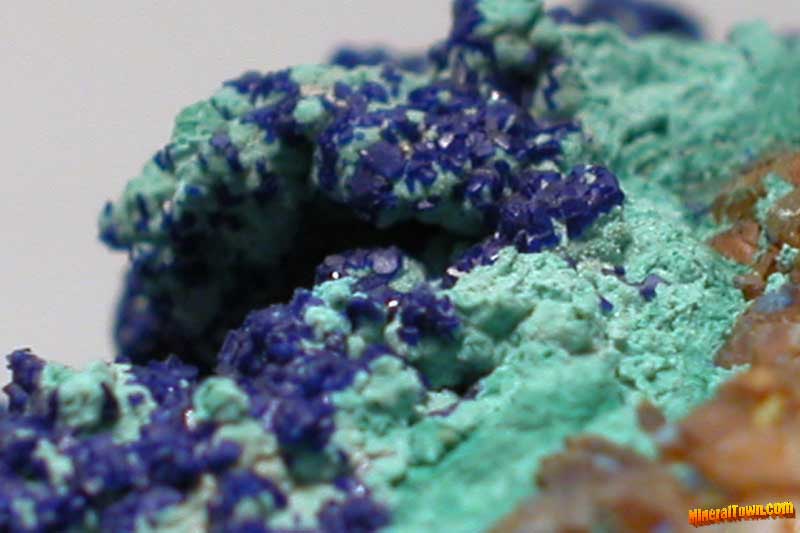 | Cerussite crystal: 3 mm. | Cerussite crystal: 4 mm. | Malachite focus: 1 cm. | Azurite focus: 50 mm. | Azurite and Malachite focus: 1,5 cm. |