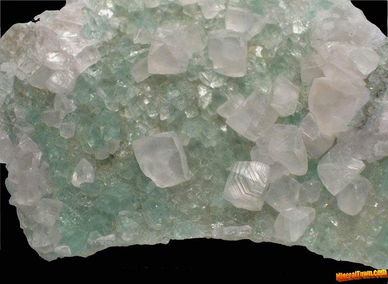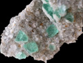 | Fluorite crystal: 2 cm. | Fluorite focus: 6 cm. | Fluorite focus: 3 cm. | Calcite on Fluorite focus: 4 cm. | Calcite crystal: 2 cm. |