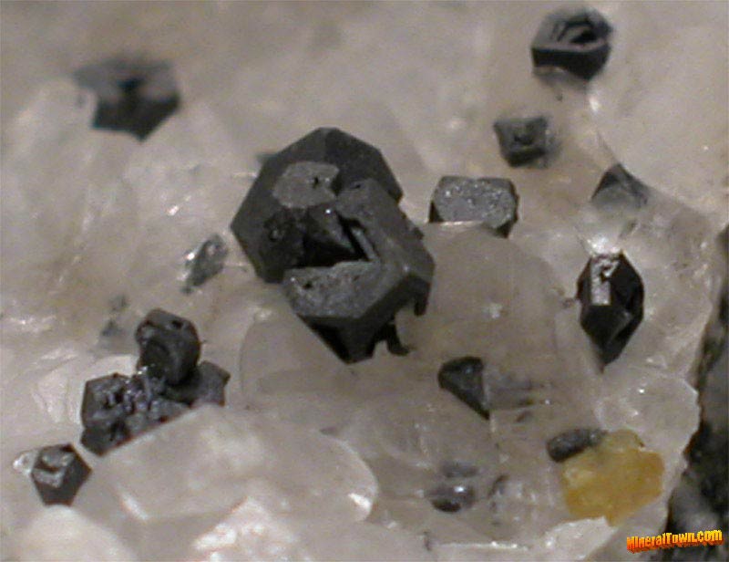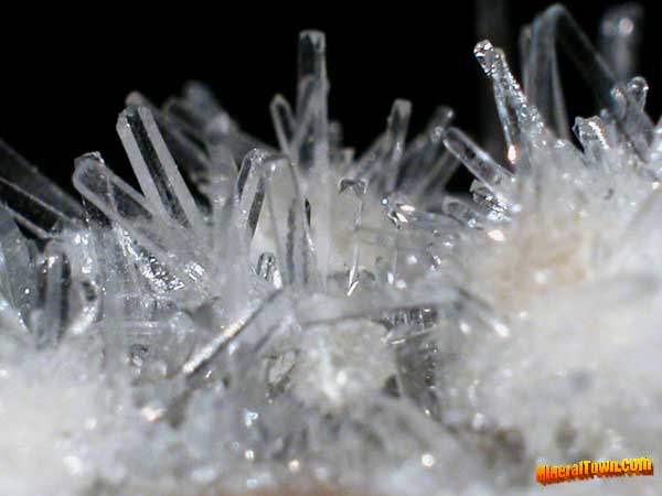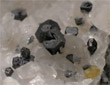 | Calcite crystal: 1 cm. | Silver focus: 50 mm. | Galena on Calcite focus: 1 cm. | Anglesite crystal: 1,5 cm. | Cerussite crystal: 5 mm. |