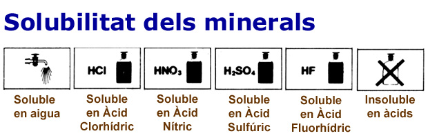 | Neteja de Minerals | Minerals i àcids que poden disoldre aquests minerals |