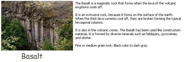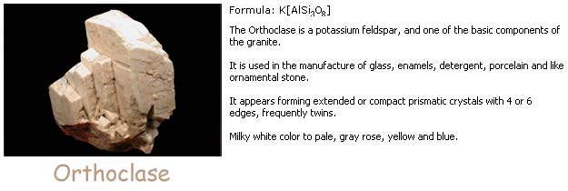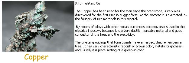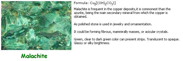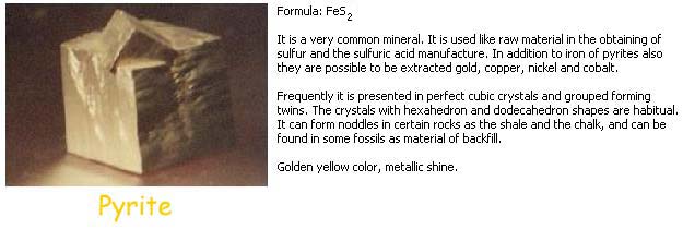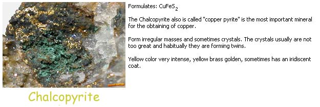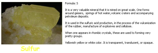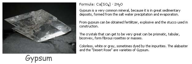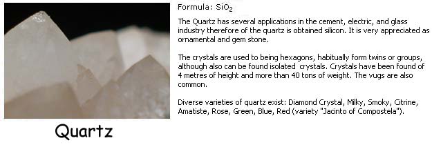 In the present time they are known more than 2000 minerals species, these are classified according to its structure and chemical composition in 9 classes, that subdivide in groups and subclasses. These fundamental classes and some of their more common minerals are: